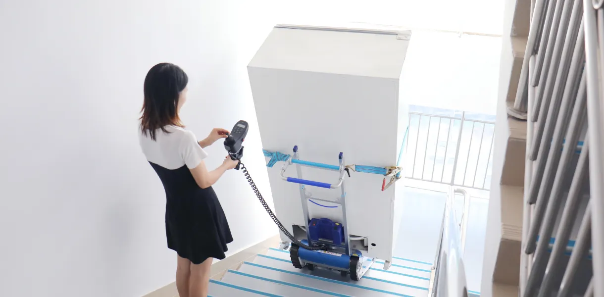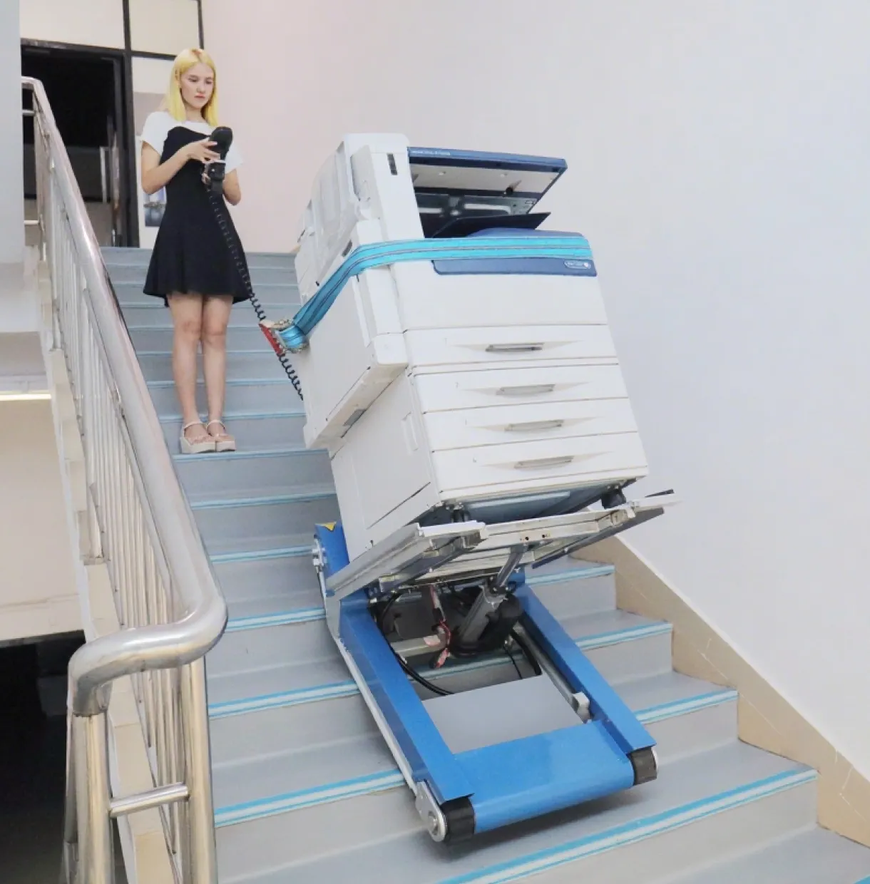 Con una capacidad de hasta 420 Kg, el Power Stair Climber CT420S le permite transportar carga arriba y abajo por una sola persona, lo que será más fácil y seguro. Puede ajustar el equilibrio del centro de gravedad de la carga automáticamente, cambiar fácilmente el modo de subir escaleras y el transporte plano. Es adecuado para el transporte de instrumentos de precisión, máquinas expendedoras, piano, caja fuerte grande, bombonas de gas, materiales de construcción, motores, máquinas de control de seguridad, etc.